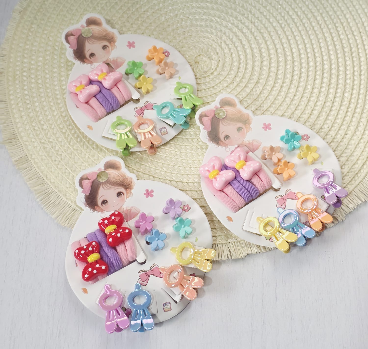 Cod. 2272-Set Carterita Moño C/colitas y broches p/pelo x unidad